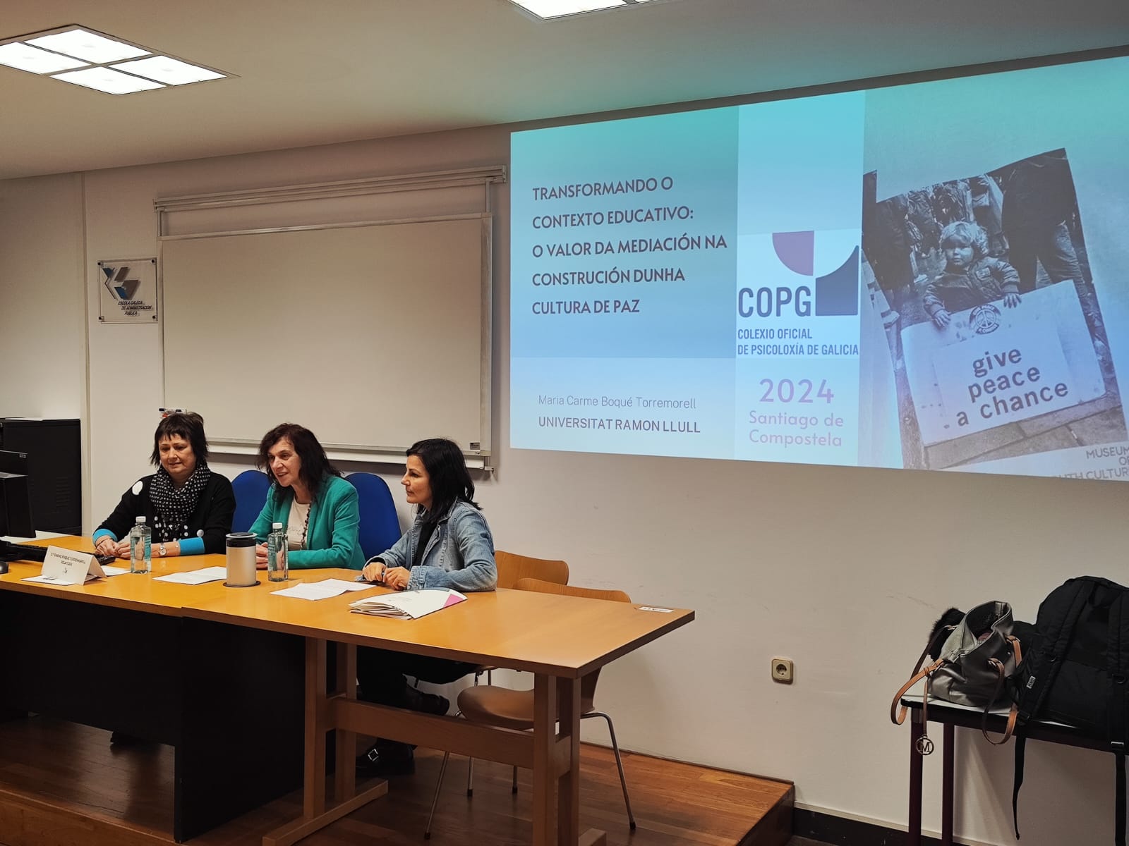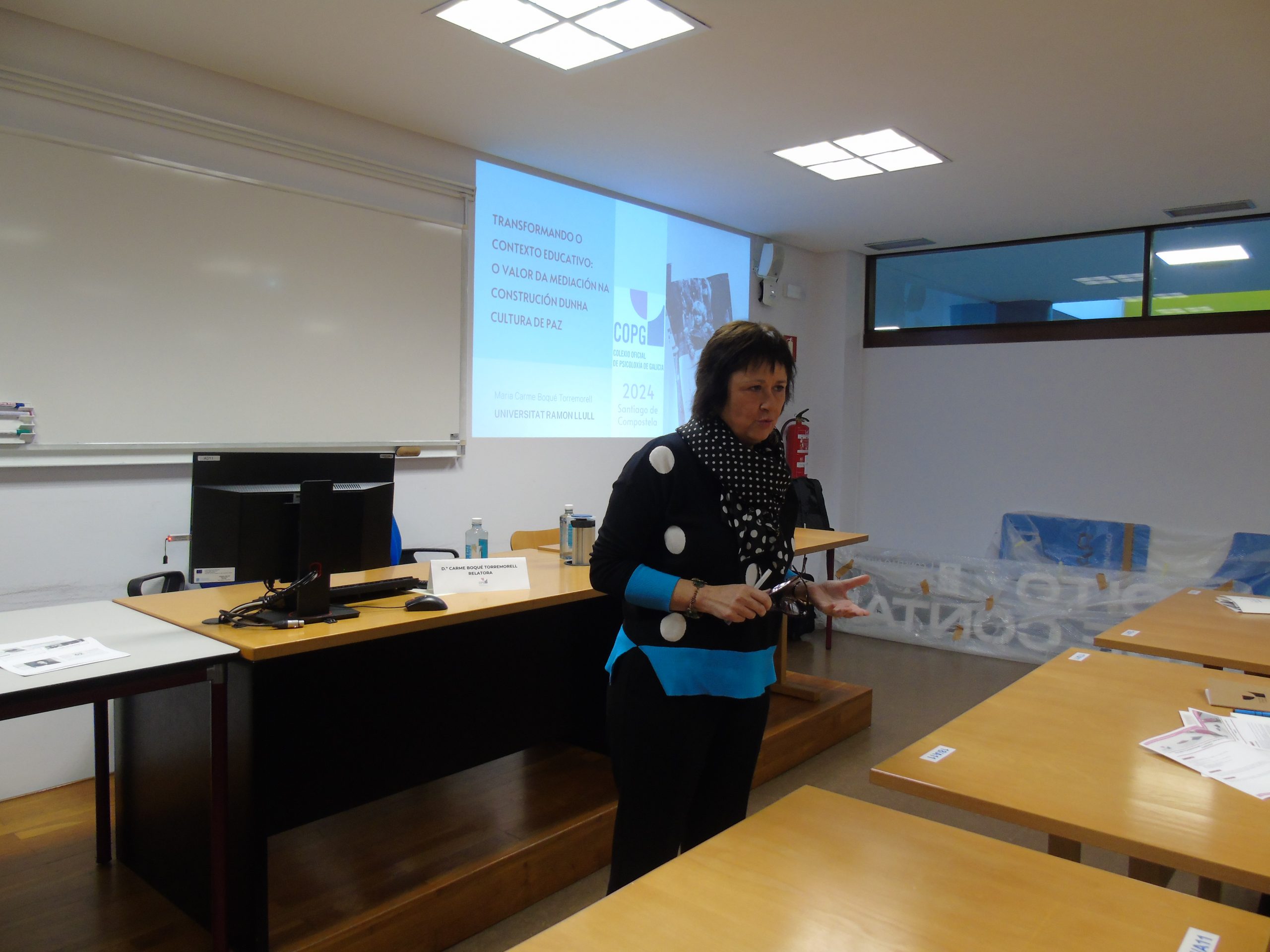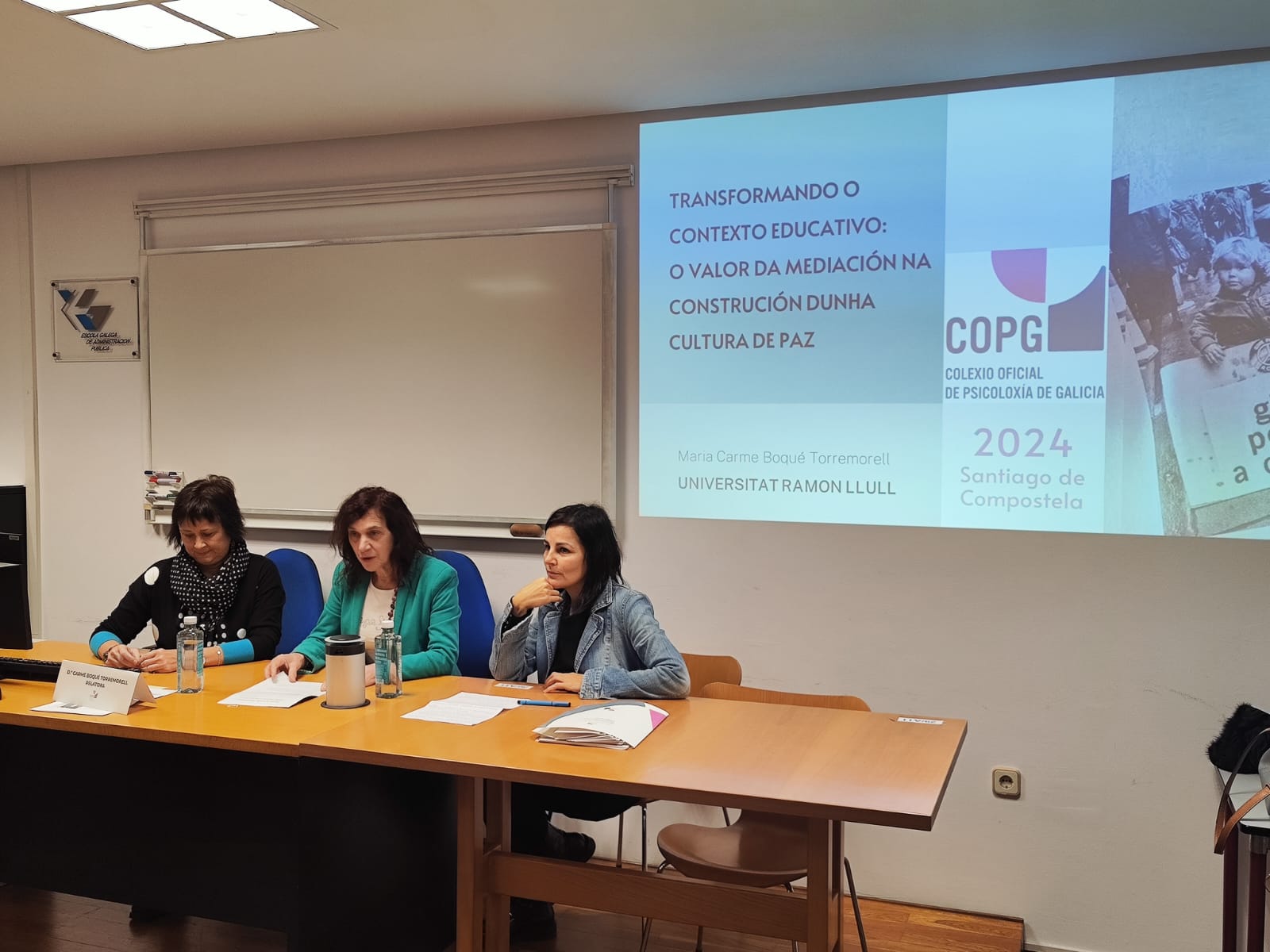 A xornada contou cunha apertura por parte da Decana do COPG, María Rosa Álvarez Prada. Tras a mesma, unha conferencia de Carme Boqué Torremorell acerca do valor da mediación no contexto educativo deu paso á intervención de catro centros educativos de primaria e secundaria que compartiron as súas experiencias con programas de mediación.