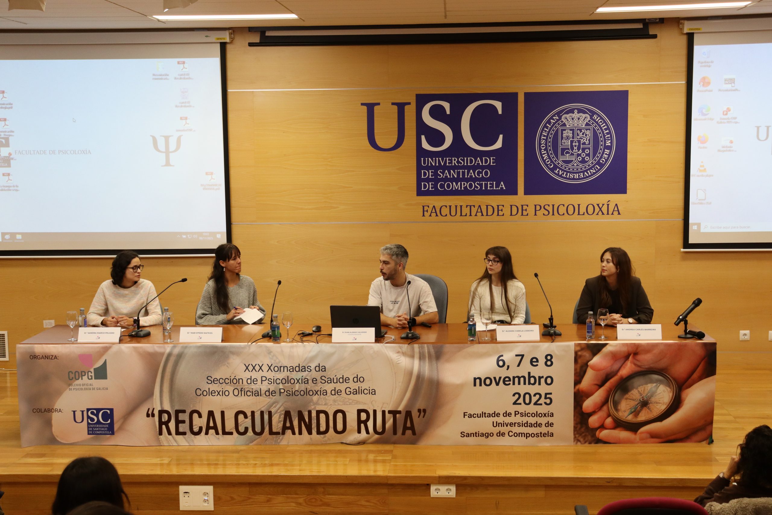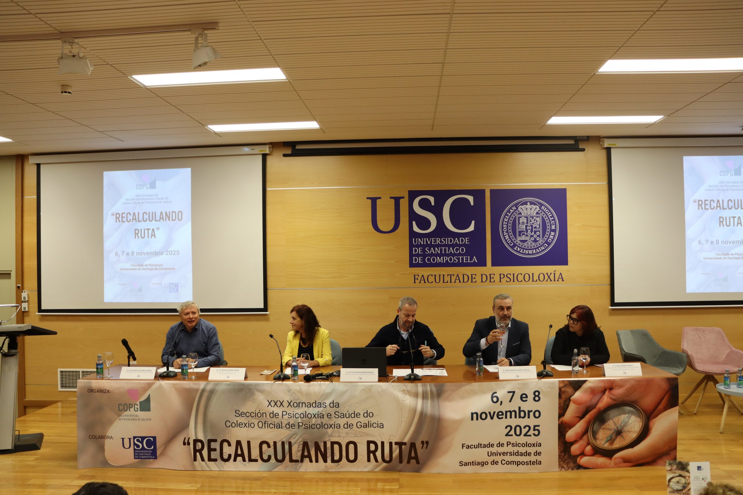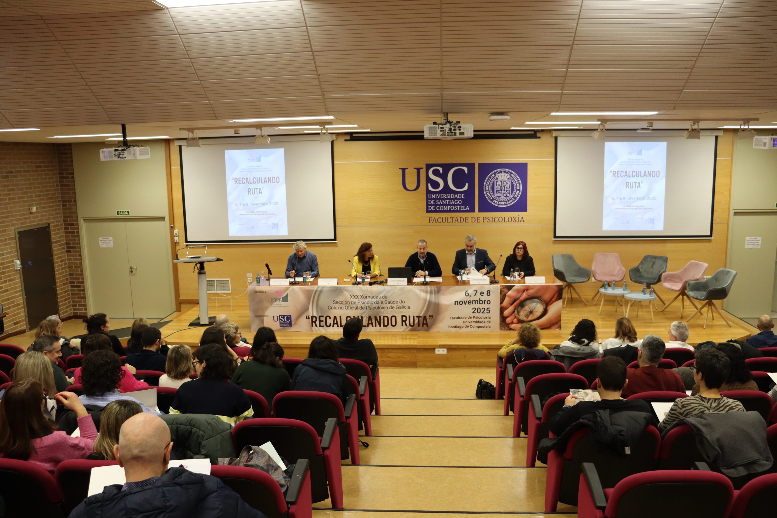 As XXX Xornadas da Sección de Psicoloxía e Saúde do Colexio Oficial de Psicoloxía de Galicia, celebradas na Facultade de Psicoloxía da Universidade de Santiago de Compostela os días 6, 7 e 8 de novembro, converteron o seu trixésimo aniversario nun espazo de análise profunda sobre os retos actuais da psicoloxía clínica e sanitaria. Baixo o lema “Recalculando a ruta”, case cento cincuenta profesionais participaron neste encontro que, tres décadas despois das súas primeiras edicións, continúa sendo unha referencia para a actualización científica e o intercambio de coñecemento en Galicia.