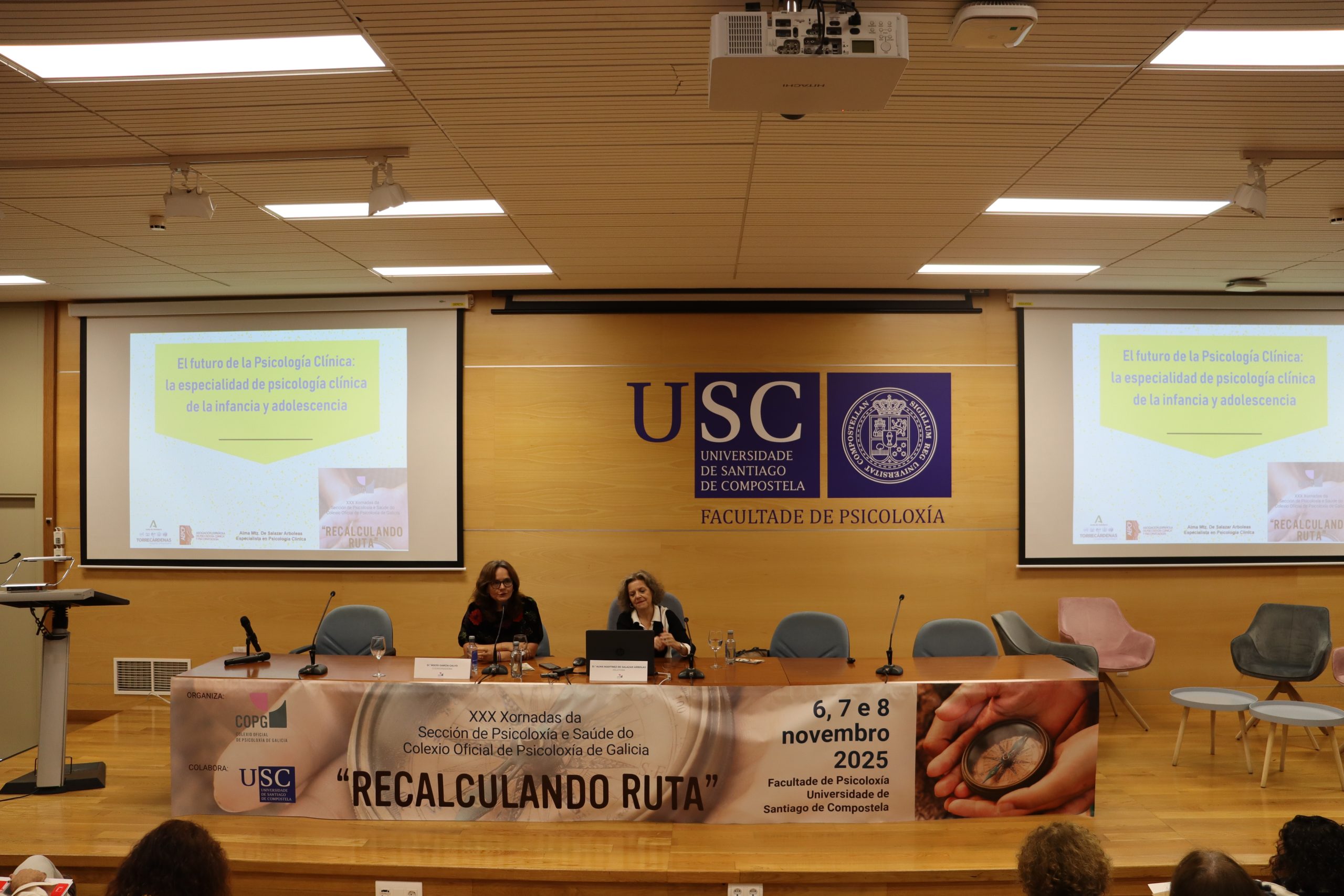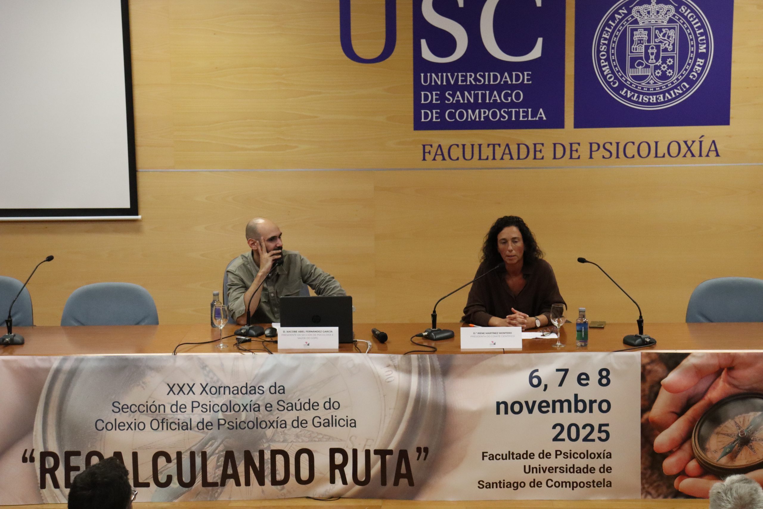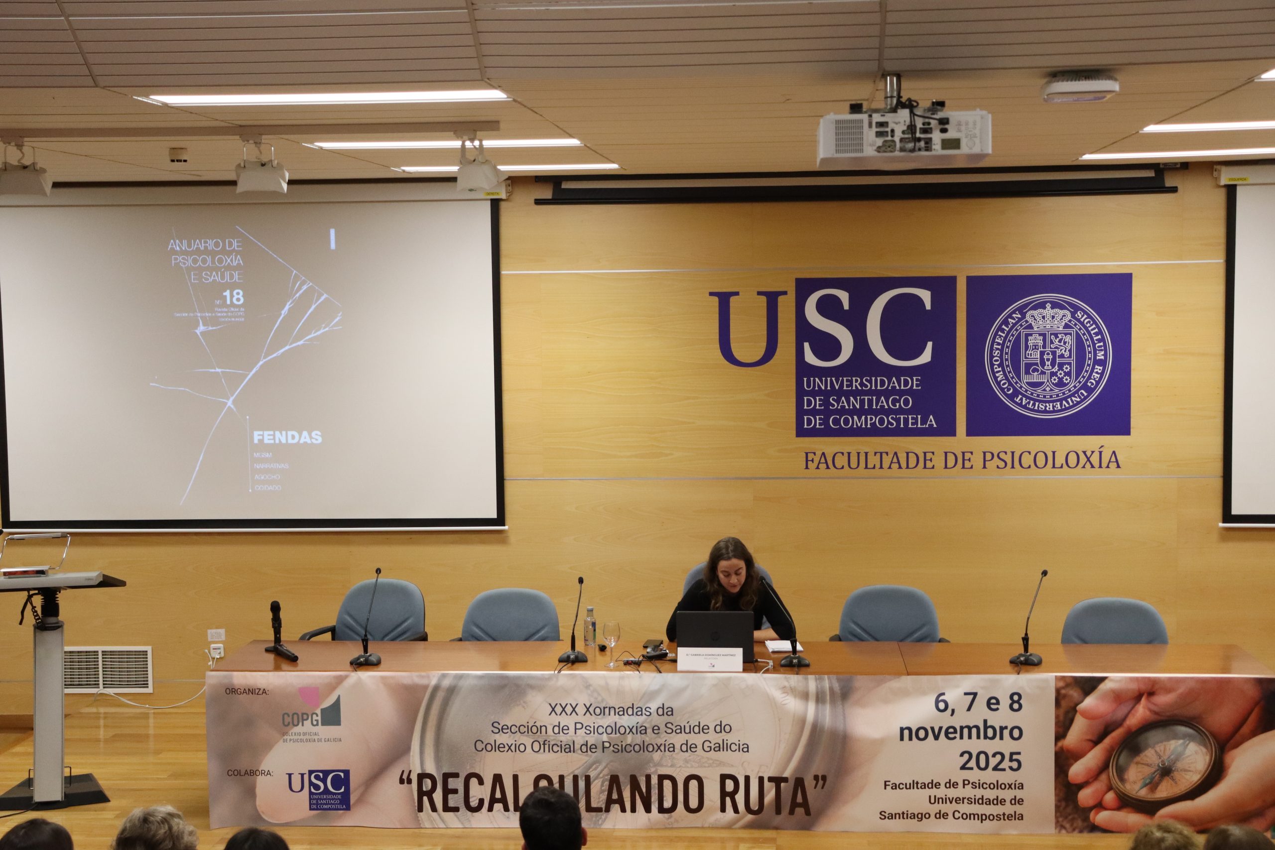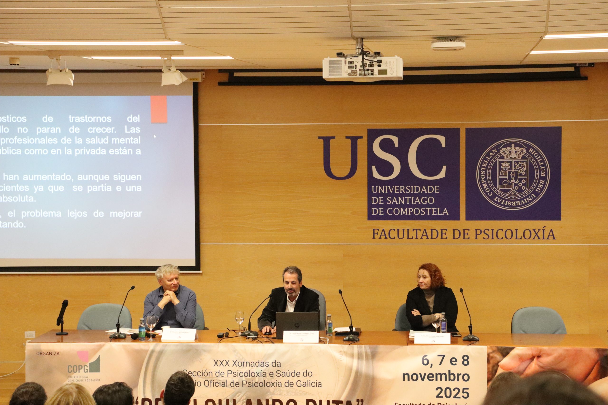 As XXX Xornadas da Sección de Psicoloxía e Saúde do Colexio Oficial de Psicoloxía de Galicia, celebradas na Facultade de Psicoloxía da Universidade de Santiago de Compostela os días 6, 7 e 8 de novembro, converteron o seu trixésimo aniversario nun espazo de análise profunda sobre os retos actuais da psicoloxía clínica e sanitaria. Baixo o lema “Recalculando a ruta”, case cento cincuenta profesionais participaron neste encontro que, tres décadas despois das súas primeiras edicións, continúa sendo unha referencia para a actualización científica e o intercambio de coñecemento en Galicia.