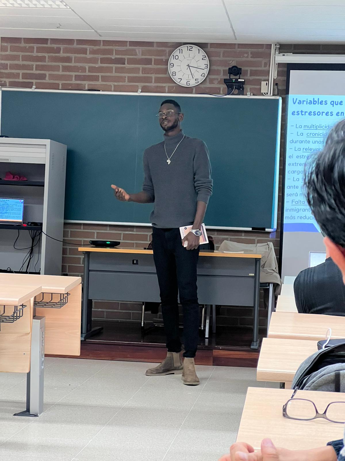 O mércores día 22, o equipo participou na clase Intervención en pobreza, inmigración e desarraigo, dirixida polo profesor Germán Vargas. A compañeira Erika Medina e o refuxiado Ibrahim Bah, fixeron un percorrido sobre os duelos migratorios e o síndrome de Ulises, baseándose na súa propia experiencia coma persoas migrantes.